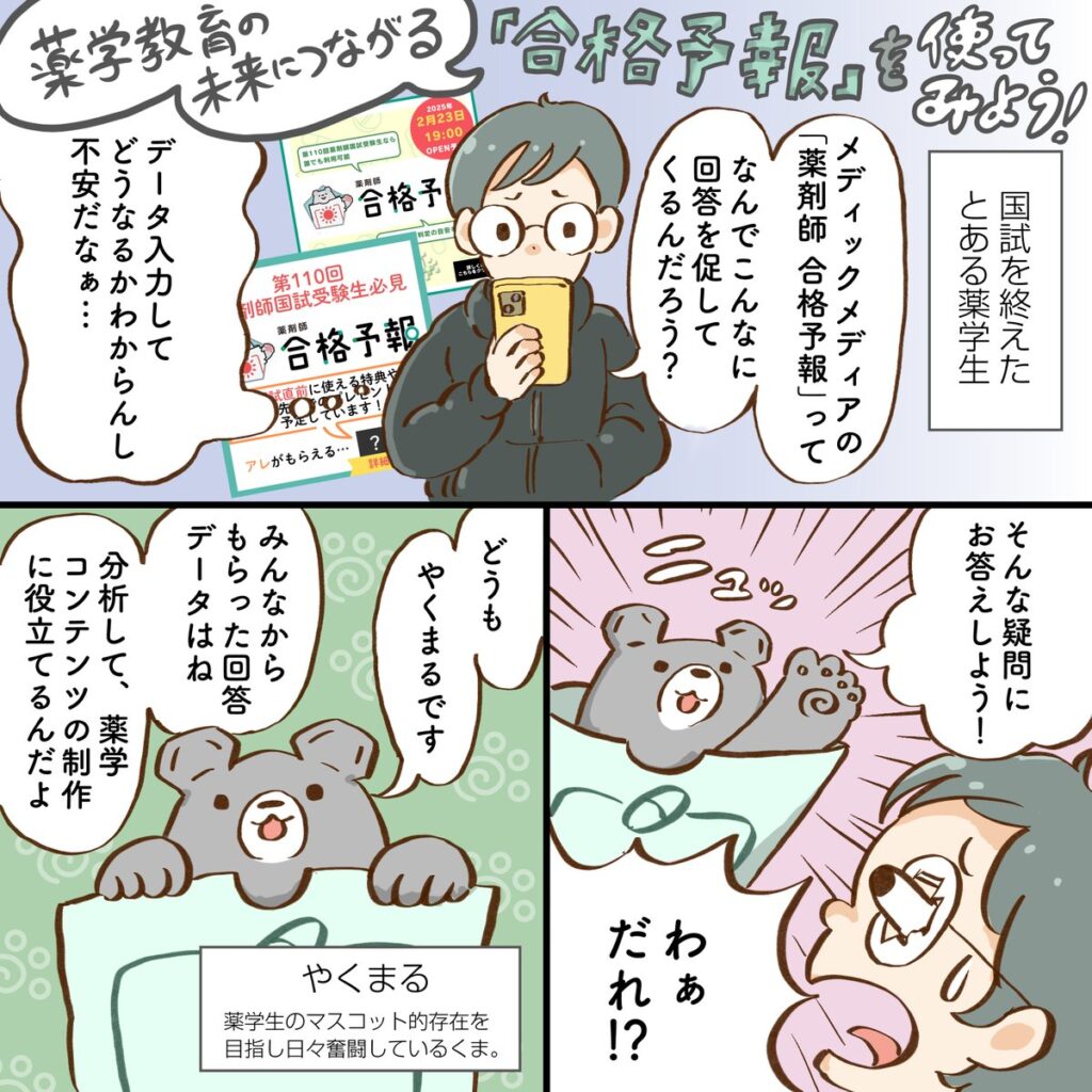 事前特典だけでなく、国試終了後に「薬剤師 合格予報」に回答してくれた受験生のうち、
