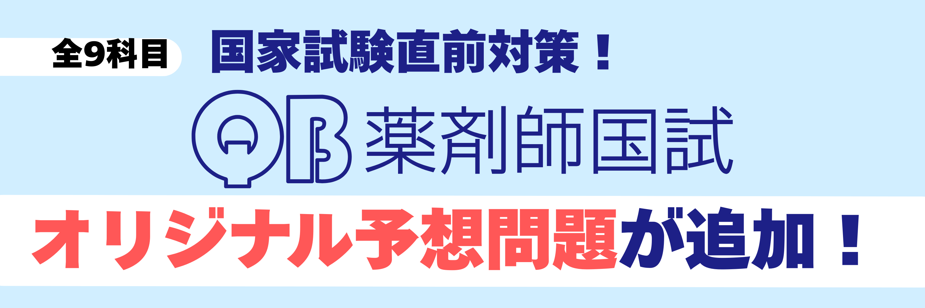 メディックメディアの「QB薬剤師」では、受験生が最終確認を効率よく行えるよう、全9科目で計60問に絞った「第111回国試直前対策 オリジナル予想問題」を新たに作成しました!