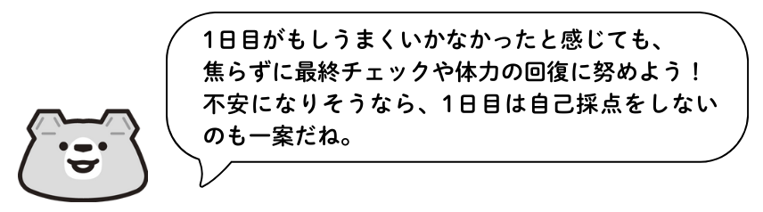 「1日目がだめでも2日目で意外となんとかなるので、絶対に受けに行ってください!」